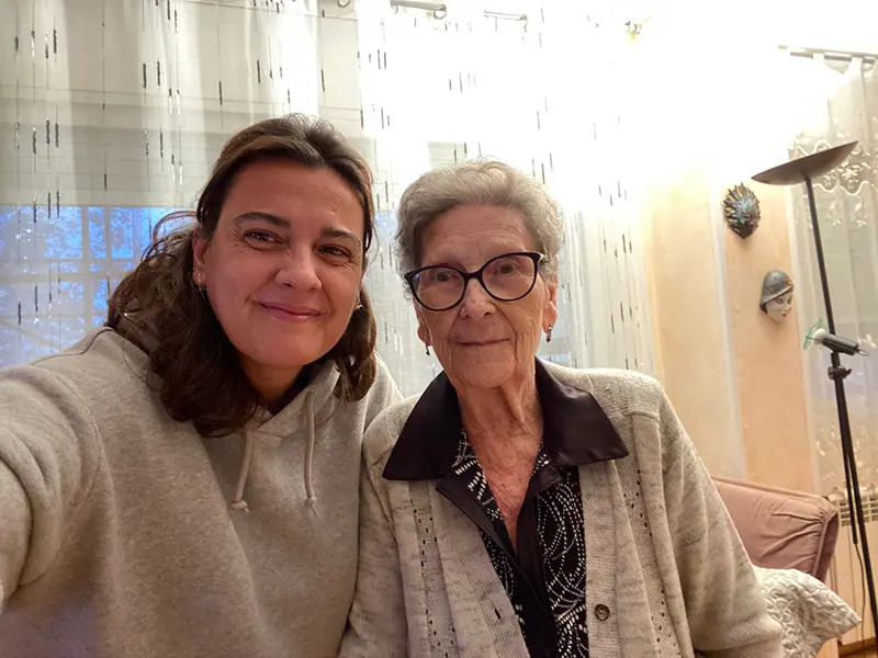 Persona voluntaria de acompañamiento en domicilio con la persona acompañada.